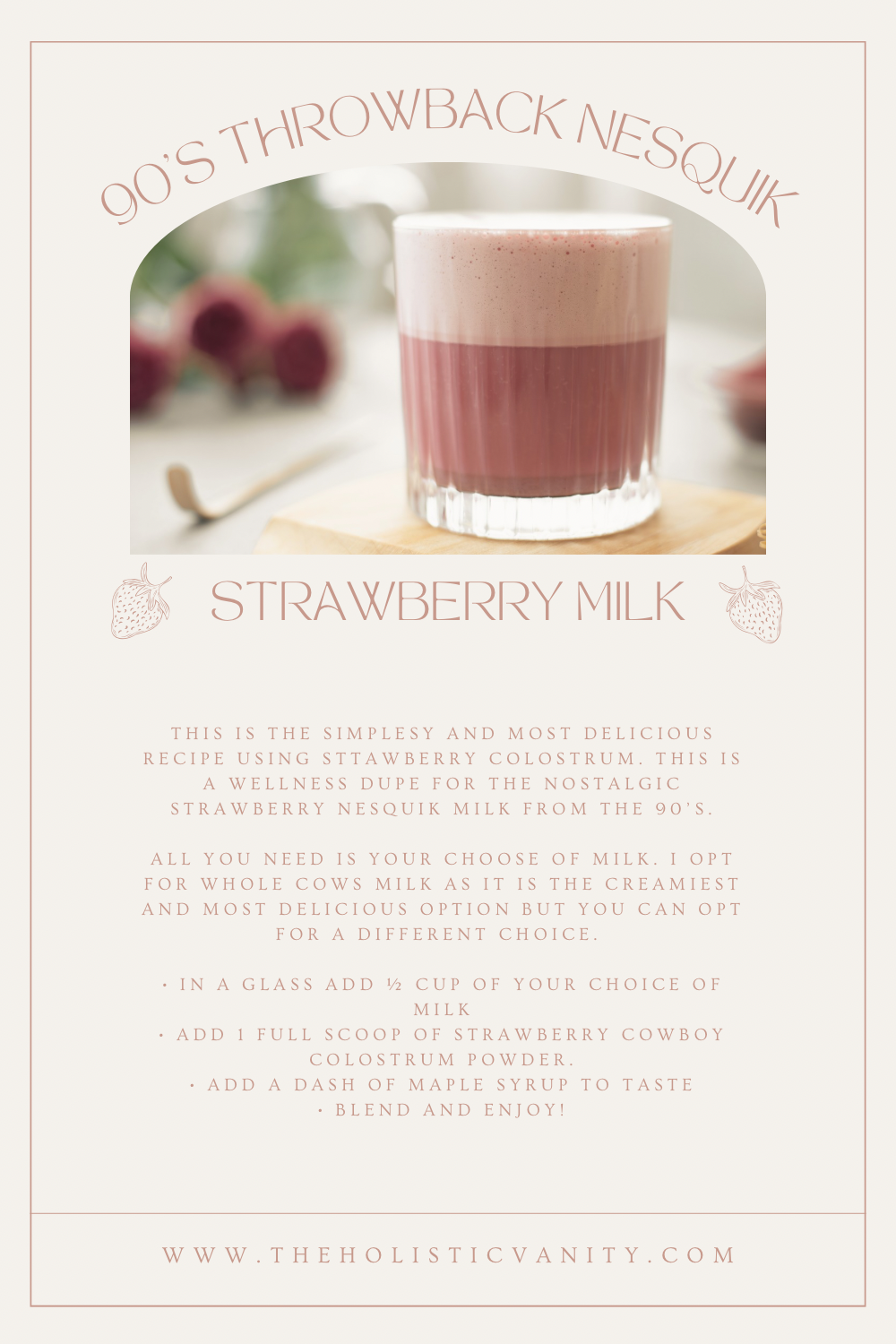 Cowboy Colostrum has been my favorite bovine colostrum supplement for almost two years now. I have shared full reviews of their colostrum, all about the health benefits of taking colostrum supplements, how it helps boost immunity and more over the years. I am a huge advocate of colostrum for it’s ability to heal the gut, boost the immune system, clear the skin, help healthy hair grow and more. It really has become a staple in my family’s daily wellness routine. The best part? We all LOVE the taste. Cowboy Colostrum created the most delicious creamy flavors that blend well into different liquids and can be added to recipes easily. I am excited to share that they have launched their newest flavor: Cowboy Colostrum STRAWBERRY! It’s as delicious as it sounds and a complete throwback to one of my favorite flavors from the 90’s since I was a huge strawberry milk fan. But thankfully, Cowboy Colostrum Strawberry powder is much healthier than my beloved and departed strawberry nesquik powder from childhood. I’m sharing all about the new flavor, some incredible recipes that I’ve whipped up since getting my hands on this new flavor, and a Cowboy Colostrum discount code for all THV readers.