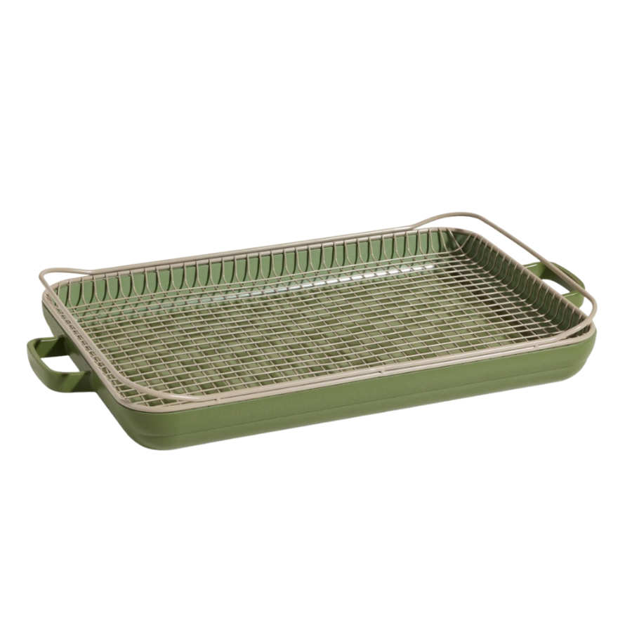 In the case of Our Place, their non-stick coating is made from a ceramic-based material, which is generally considered a safer alternative to traditional Teflon-style coatings. Unlike PTFE-based surfaces, ceramic coatings don’t off-gas toxic fumes at high temperatures and are made without synthetic chemical additives.